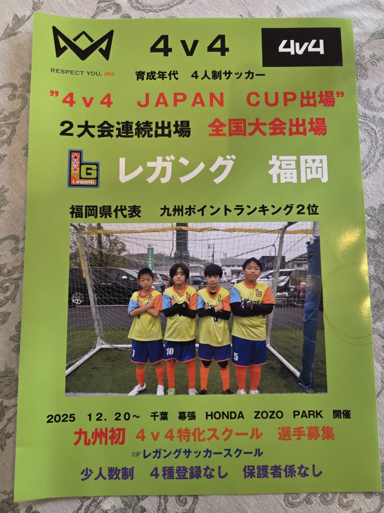 4v4 JAPAN CUP⚽️出場 2025.11.21 レガング設立して6年目に突入⚽️ 4v4に関わり3年目に入りました。 今はそういった理解のある方々に囲まれて 凄く環境も良く選手、コーチ含め楽しくサッカーに向き合えていると感じております😊 新しく記念にポスター作成です★ 何より子供たちが主役で主体的で子供たちの心が成長できたらと思っております JAPAN CUP良い時間にしようね⚽️ この記事のタイトルとURLをコピーする 4v4 岡山大会 ゴールドランク 前の記事 4v4 フェスティバル⚽️ 次の記事
